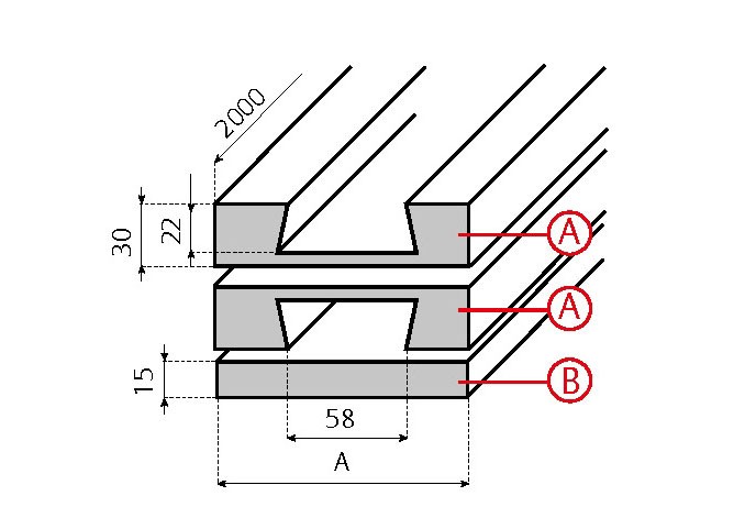 A Abschnitte mit geraden Schienen für Transport/Rücklauf