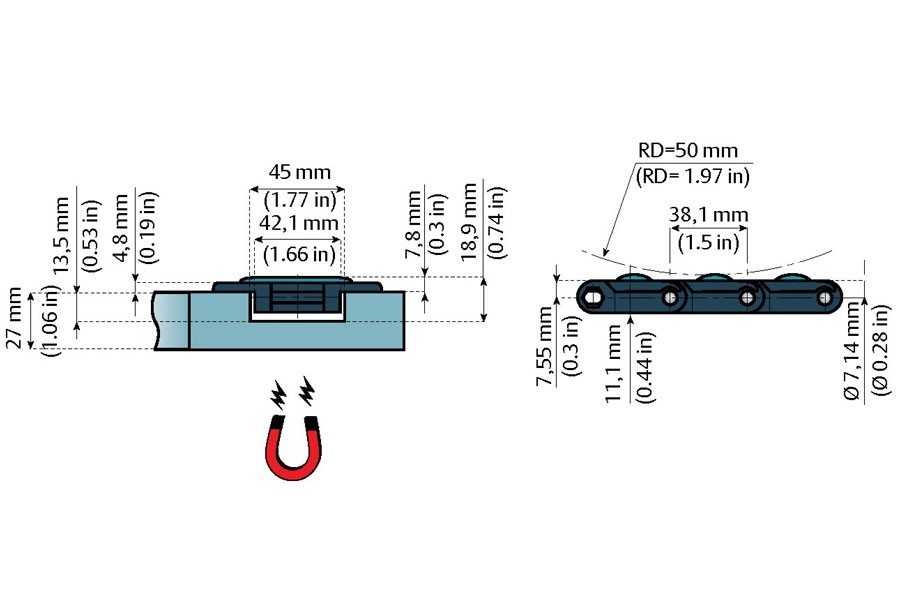 ArtikelbezeichnungMaterial PlattenMaterial GummiBruchlast NBruchlast lbsBreite L mmBreite L ZollR mmR ZollGewicht Kg/mGewicht lbs/ft.