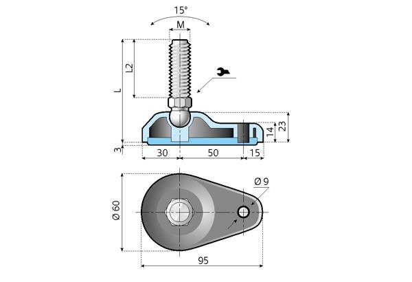 | Verzinkter Stahl | M16 | 103 | 69 | LA60-01-PM16L105 | LA60-01-PM16L105R | 15A | 13 | 15000 | FE.ZN |
