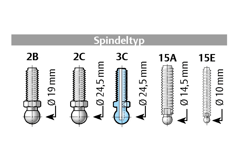Artikelbezeichnung montiertSpindeltypMaterial der Muttern