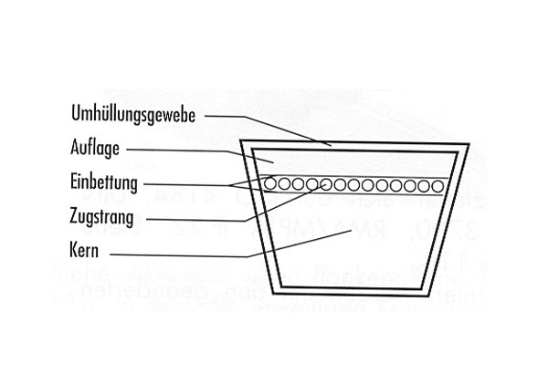 | Länge mm length La | Querschnitt b x h cross section W x H | Winkel angle | Gewicht weight kg/m | Vmax belt speed m/s | fb max bending frequency 1/s | dw min min. pulley diameter mm | Temperatur- bereich temperature range C° | Anzahl der Zugstränge number of cord cables | |