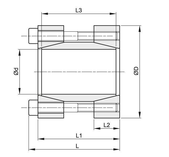 starre Kupplung für eine genaue Befestigung, geeignet für die Übertragung von mittelhohen Drehmomenten, der Austausch ist günstig, Übvertragung hoher Torsions- und Axialkräfte, leichte Montage und Demontage, für Wellen ab Durchmesser von 17mm bis 80mm