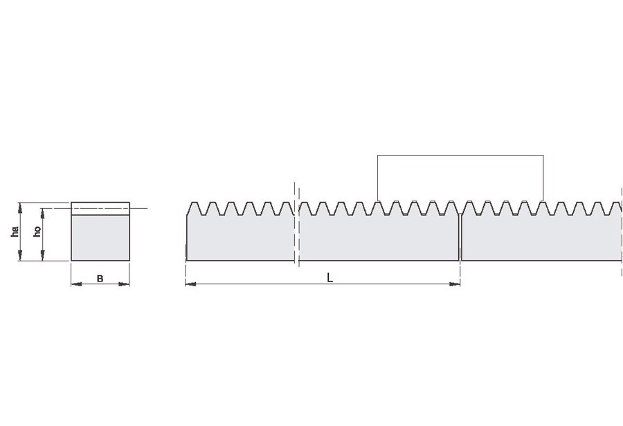 | Modul | Länge | exakte Länge | Zähnezahl | B | Ha | Ho | kg |