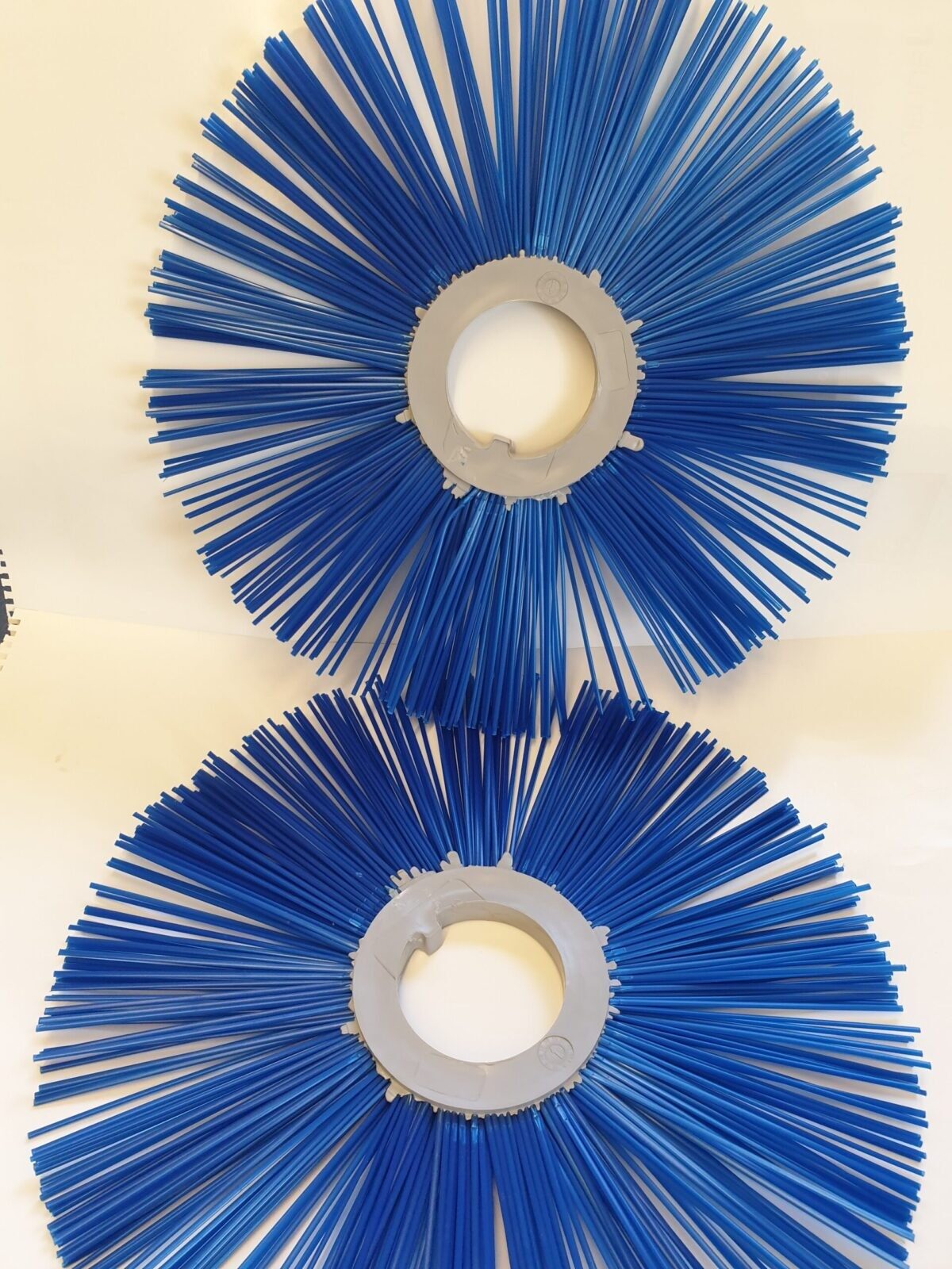Dabei handelt es sich um die gängigsten Bürstenringe, Körper und Borsten können aus Kunststoff oder Stahl gefertigt werden. Aufgrund der Geometrie können die Scheibenbesen besonders leicht getauscht werden, dies ist ein klarer Wartungsvorteil.