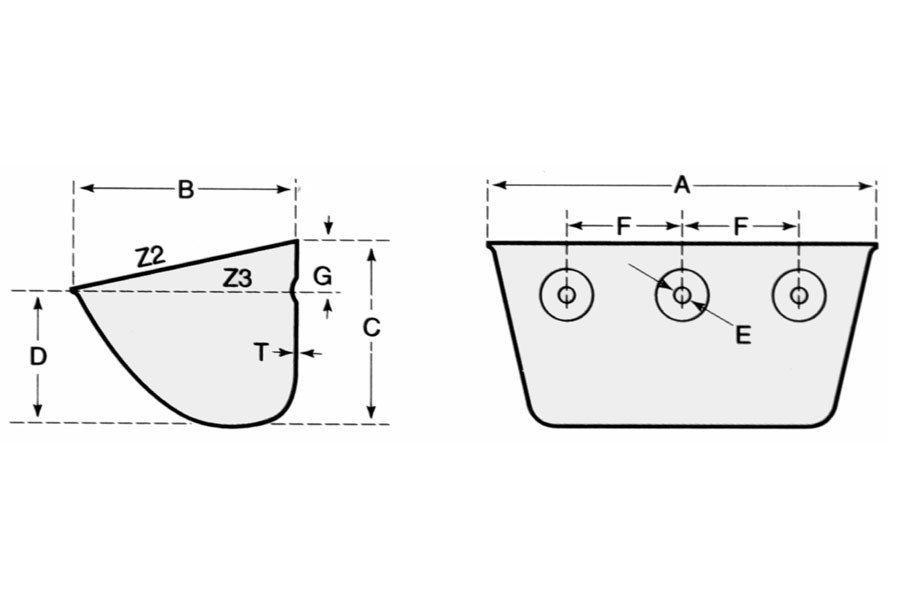 | A | B | C | D | T | kg | Inhalt in L Z2 | Inhalt in L Z3 | Löcher | E | F | G |
