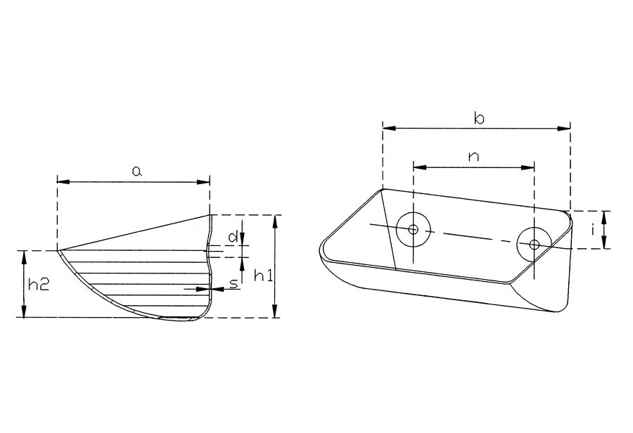 | b | a mm | s mm | h1 mm | Inhalt netto l | Inhalt brutto l | max. B/m | d mm | n mm | i mm |