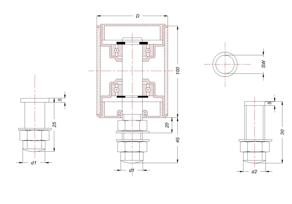 Rollen-durchm. Dd1 (mm)d2 (mm)SW (mm)Gewicht