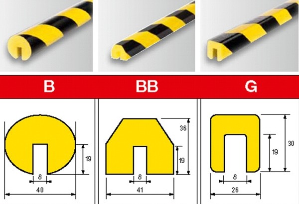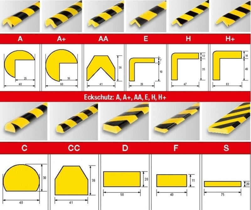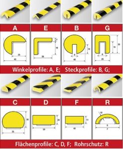 In unserem Sortiment finden Sie auch Prallschutzprofile aus Polyurethan-Polymer in verschiedenen Ausführungen.