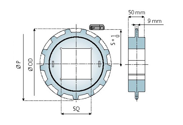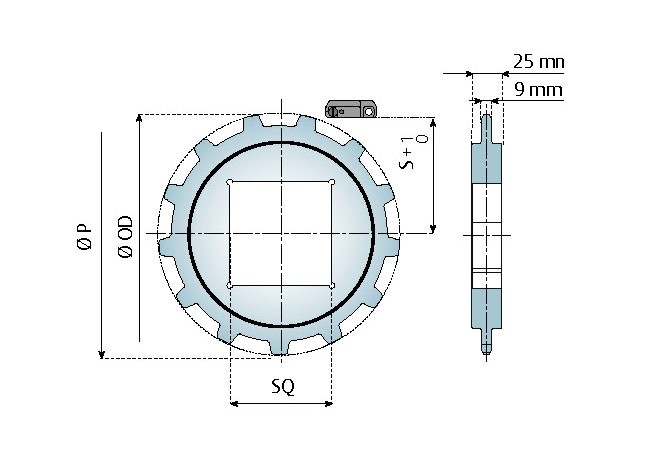 Gefräste Kettenantriebsräder mit quadratischer Bohrung – einteilig gleitend
