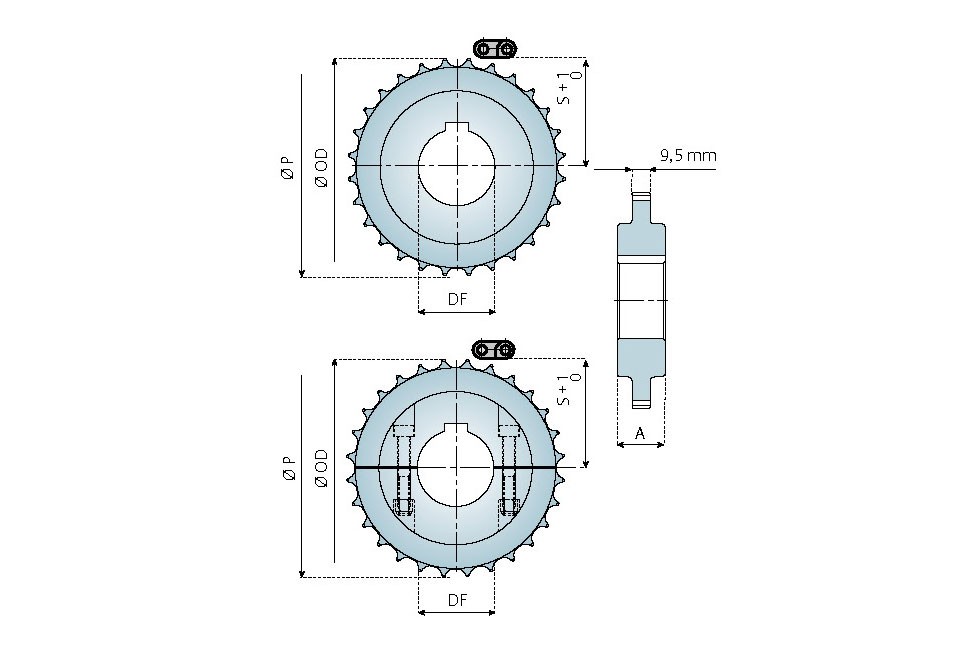 Gefräste Kettenantriebsräder – geteilt Festsitz