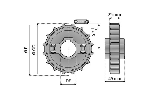• Um Kettenräder mit einzelner Nut, die sich frei auf dem Schaft bewegen können, zu bestellen, fügen Sie einfach den Buchstaben „P“ (= Plus) zur vorhandenen Artikelbezeichnung hinzu. Beispiel: Artikelbezeichnung