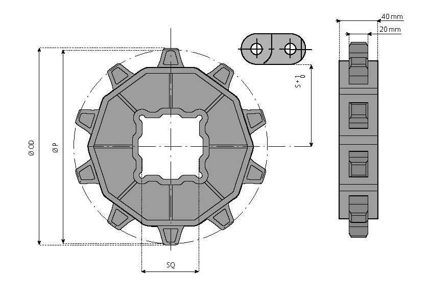 Spritzgegossene Kettenantriebsräder mit quadratischer Bohrung – einteilig gleitend