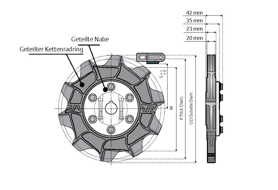 Spritzgegossene Kettenantriebsräder – geteilt Festsitz