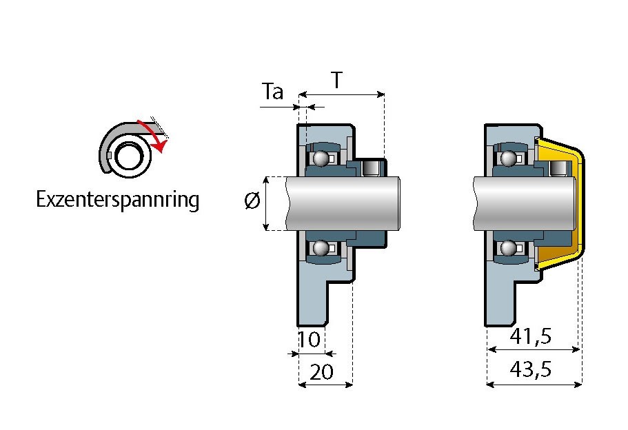 | Welle Ø | T | Ta | Lager Chromstahl Artikelbezeichnung | Separate geschlossene Sicherheits- kappe Teile-Nr. | Separate offene Sicherheits- kappe T eile-Nr. |