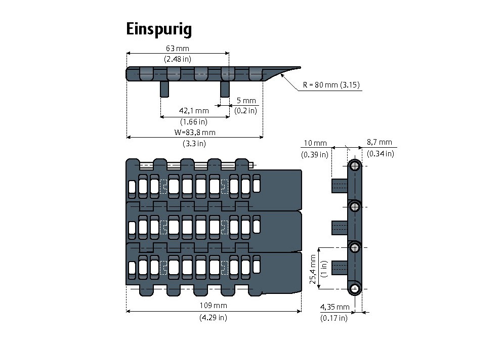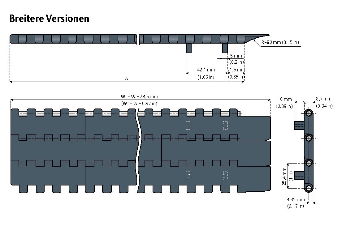 ArtikelbezeichnungMaterialBreite WTeilung PRückbiegeradiusMax. NutzlastGewicht
