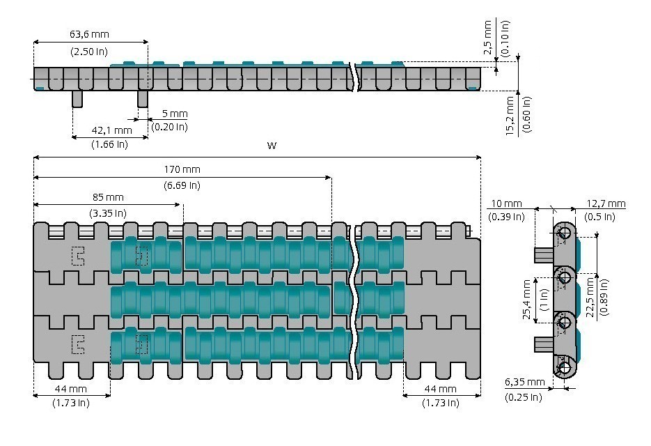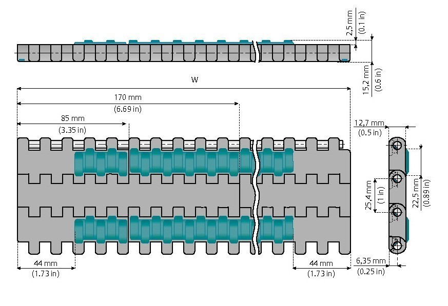 Bandmaterial: reibungsarmes Azetal, Grau