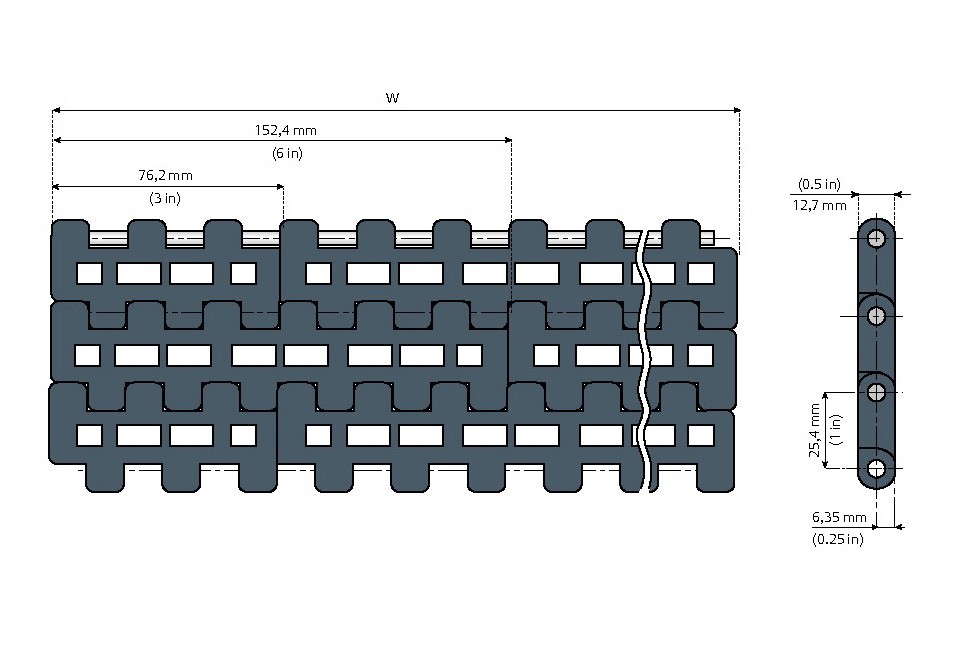| Breite W mm | Breite W Zoll | Artikelbezeichnung |