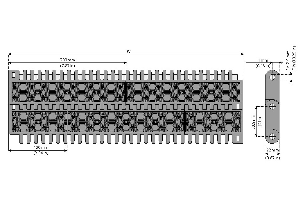 breite ≤ 800 mm (31.5 Zoll): 20 Teilungen (1,02 m)