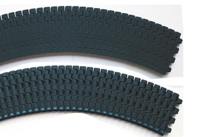 Dieses System bietet eine einzigartige Lösung für kurvengängige Anwendungen in Anlagen mit Modul-Förderbändern.