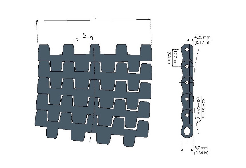 • Die kurze Teilung ermöglicht Inline-Transfers. Standardlänge: 240 Teilungen (3,05 m – 10 ft.) Gewicht: 13,7 kg/m2 (2.8 lbs/ft.2) Bolzenmaterial: ferritischer rostfreier Stahl