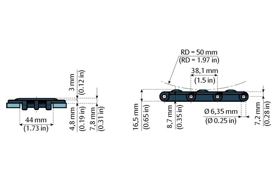 In unserem Sortiment finden Sie Scharnierbandketten, Kurvenführungen, Anlagenkomponenten und Modulbänder aus versch. Materialien der Firma Systemplast und Rexnord.