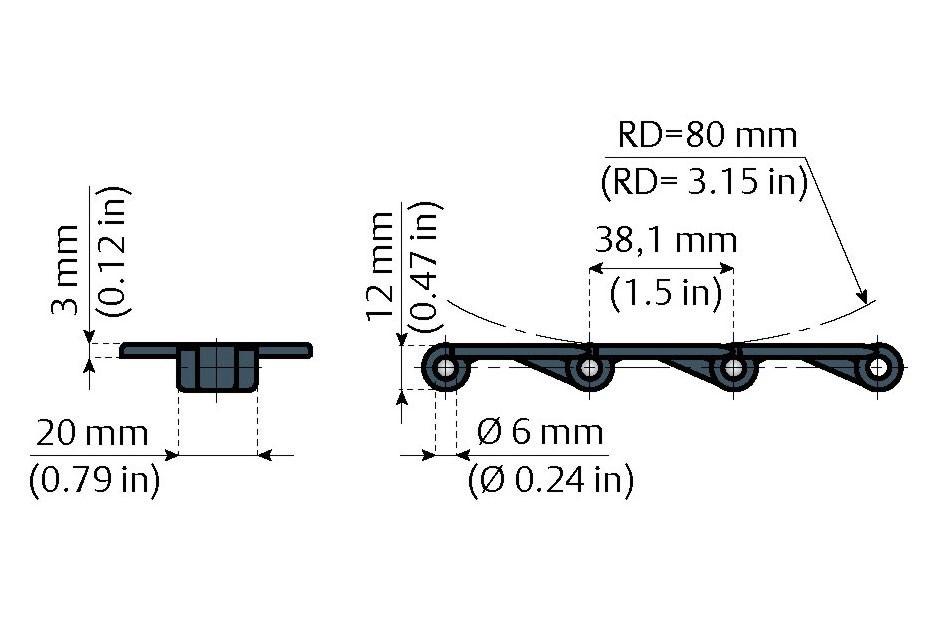 In unserem Sortiment finden Sie Scharnierbandketten, Kurvenführungen, Anlagenkomponenten und Modulbänder aus versch. Materialien der Firma Systemplast und Rexnord.