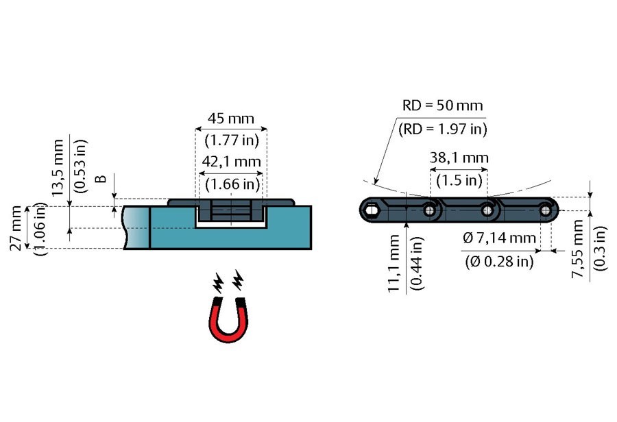 ArtikelbezeichnungPlatten materialBruchlast NBruchlast lbsBreite L mmBreite L ZollB Dicke mmB Dicke ZollR min. mmR min. ZollGewicht Kg/mGewicht lbs/ft.