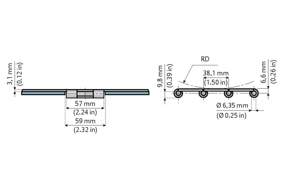 ArtikelbezeichnungMaterialMax. Betriebslast NMax. Betriebslast lbsFinish μmBreite L mmBreite L ZollG mmG ZollRD mmRD ZollGewicht Kg/mGewicht lbs/ft.