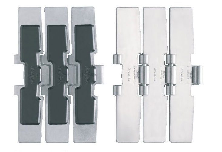 In unserem Sortiment finden Sie Scharnierbandketten, Kurvenführungen, Anlagenkomponenten und Modulbänder aus versch. Materialien der Firma Systemplast und Rexnord.