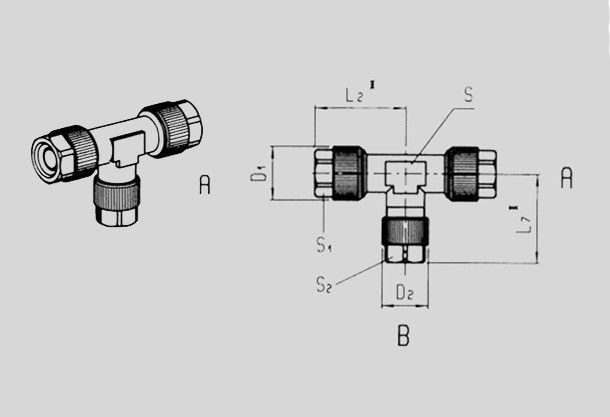 | für Schlauch A (D/d) | für Schlauch B (D/d) | Nennweite (mm) | L2 | L7 | D1 | S1 | D2 | S2 | S | Typ S | Best.- Nr. |